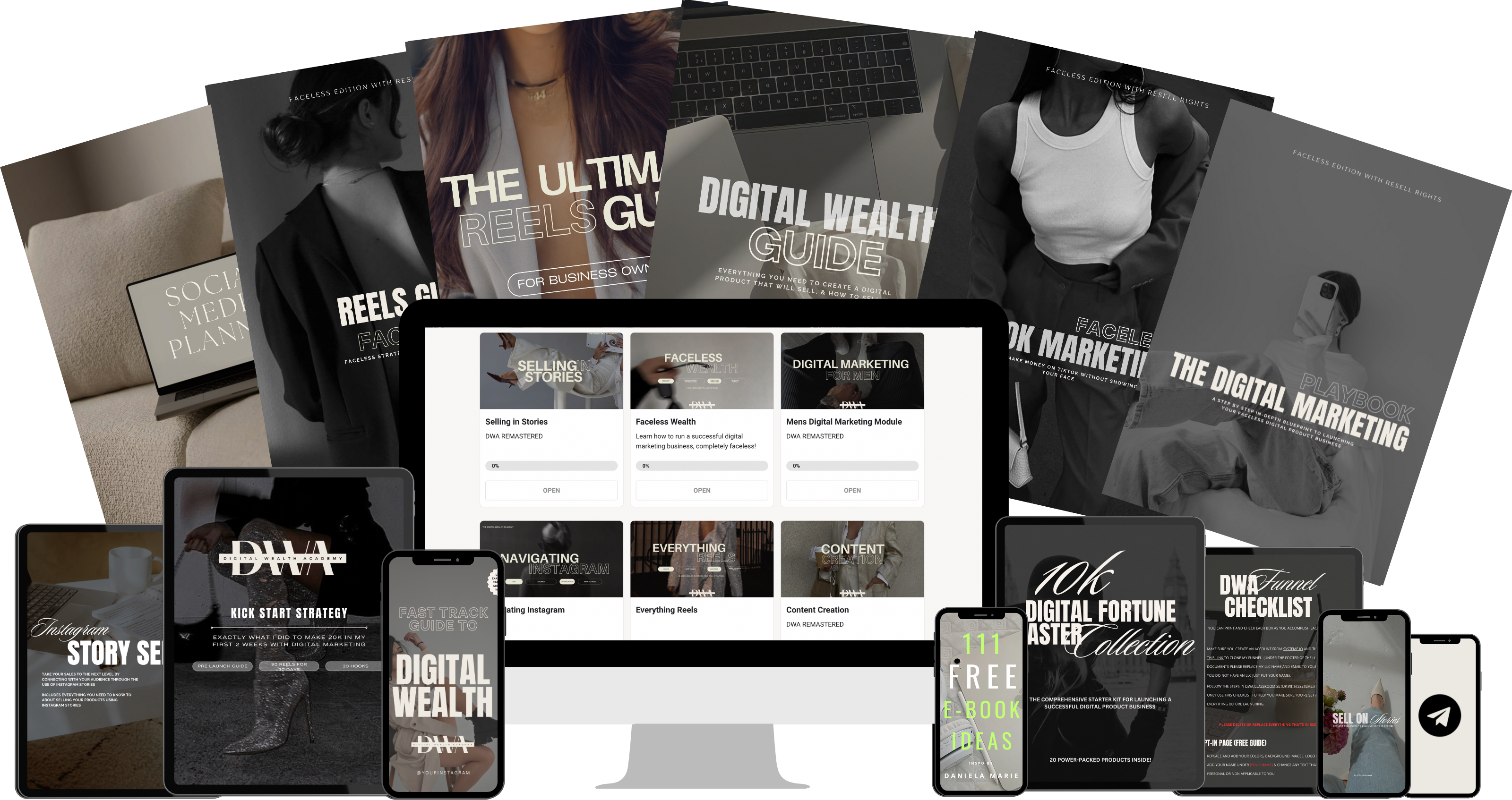 This is a comprehensive marketing course designed for beginners (even with no experience) to learn how to launch a successful digital marketing business. This is a DONE-FOR-YOU in-depth marketing course. The course includes step-by-step modules that will walk you through launching your digital product business and how to use digital marketing to make sales. You will learn how to brand yourself, create multiple streams of income, set up your automated income funnels, and advertise on various social media channels, and everything else you need to create a profitable online business. This product is unique because once you buy it you own it. This means you can re-brand and sell it for 100% profit. All future updates on DWA are free and new modules are being updated on a regular basis.
